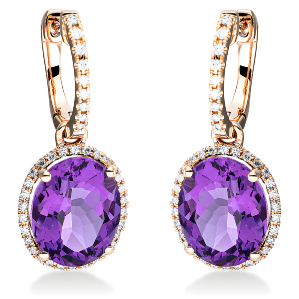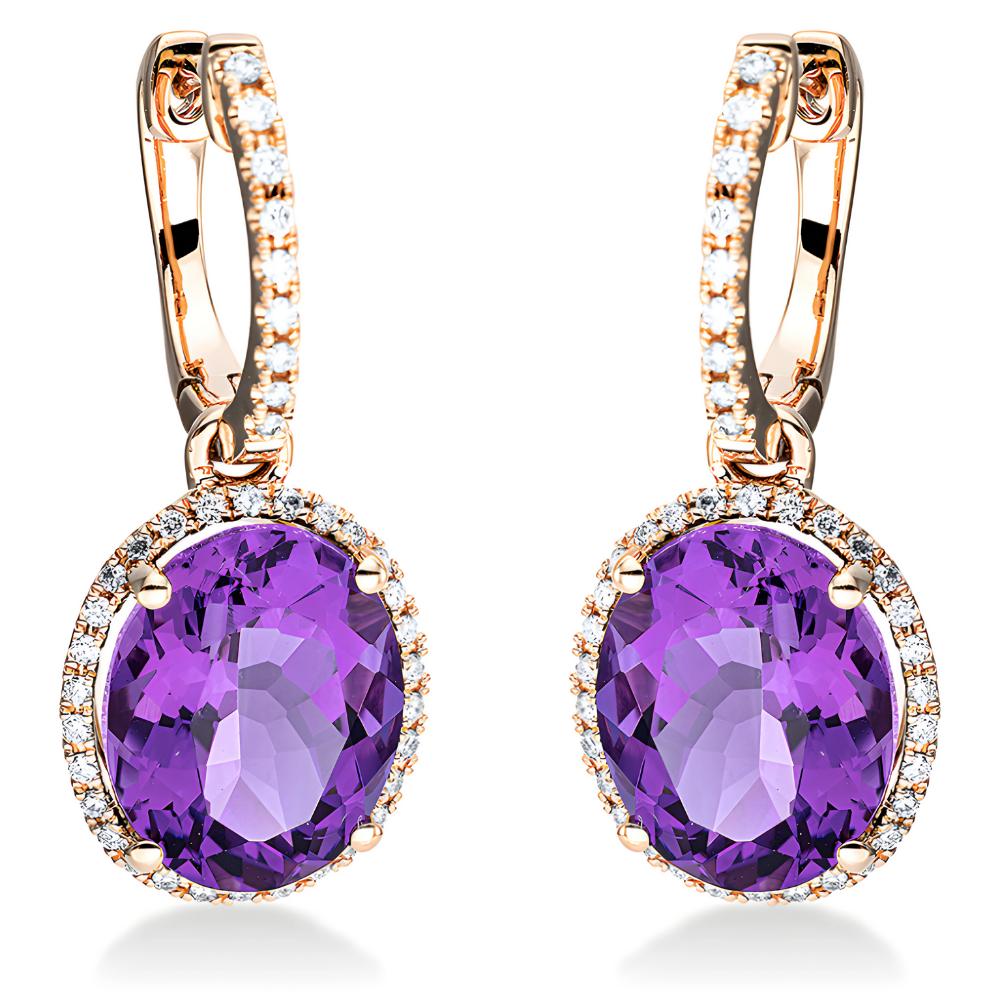 Ametysty – kolczyki z owalnymi ametystami i diamentami (7,28 ct)