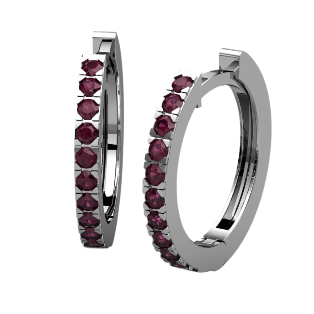 „Fashion Gold“ juvelyrų kurti elegantiški auksiniai auskarai, kurių kiekvieną puošia po detimt rubinu. Auskarų užsegimas yra labai kokybiškas, todėl jų nepamesite. Pagaminta Lietuvoje. Auskarai gali būti pagaminti pagal užsakymą: raudono, geltono bei balto aukso.