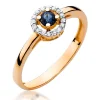 Halo dizaino sužadėtuvių žiedas su safyru 0,15 karato ir natūraliais deimantais.