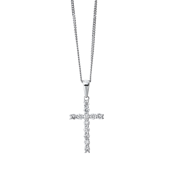 Klasyczny złoty łańcuszek i złoty krzyżyk z lśniącymi diamentami o masie 0,51 karata. Uwiecznij chwilę z tą wyjątkową biżuterią. Doskonały prezent na co dzień i na specjalne okazje, dla wyjątkowego stylu.