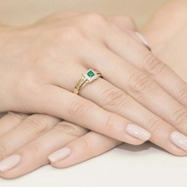 • Centrinis akmuo: Kavadrato formos smaragdas 0,15 ct