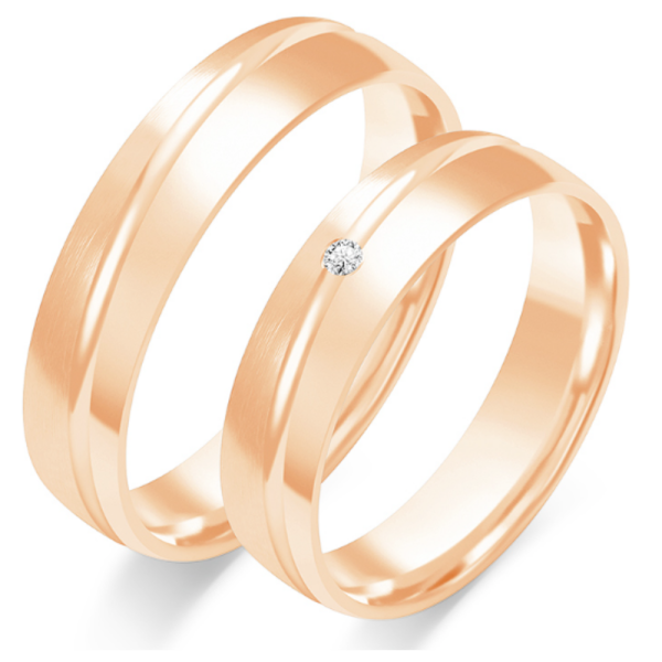 Nepakartojamo grožio vestuviniai žiedai išskirtinio dizaino, aukštos kokybės, su komforto zona. Puikus pasirinkimas, atspindintis jūsų meilės istoriją. Jų technologija išsiskiria – vestuviniai žiedai gaminami iš grūdinto aukso, kuris atsparus mikro įtrūkimams, neturi sudėtyje nikelio bei mažiau braižosi. Žiedai gali būti pagamintas pagal užsakymą: raudono, geltono bei balto aukso, už papildomą mokestį su kitos aukso spalvos krašteliais, skirtingu žiedo pločių arba su deimantais.