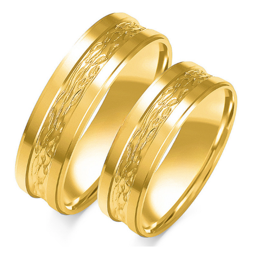 Nepakartojamo grožio vestuviniai žiedai išskirtinio stiliaus, aukštos kokybės, su komforto zona. Puikus pasirinkimas, atspindintis jūsų meilės istoriją. Jų technologija išsiskiria – vestuviniai žiedai gaminami iš grūdinto aukso, kuris atsparus mikro įtrūkimams, neturi sudėtyje nikelio bei mažiau braižosi. Žiedai gali būti pagamintas pagal užsakymą: raudono, geltono bei balto aukso, už papildomą mokestį su kitos aukso spalvos krašteliais, skirtingu žiedo pločių arba su deimantais.