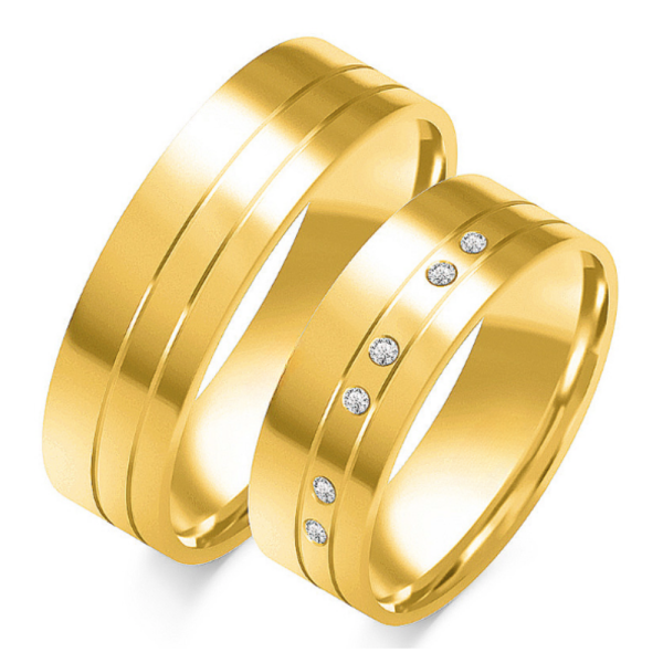 Nepakartojamo grožio vestuviniai žiedai išskirtinio stiliaus, aukštos kokybės, su komforto zona. Puikus pasirinkimas, atspindintis jūsų meilės istoriją. Jų technologija išsiskiria – vestuviniai žiedai gaminami iš grūdinto aukso, kuris atsparus mikro įtrūkimams, neturi sudėtyje nikelio bei mažiau braižosi. Žiedai gali būti pagamintas pagal užsakymą: raudono, geltono bei balto aukso, už papildomą mokestį su kitos aukso spalvos krašteliais, skirtingu žiedo pločių arba su deimantais.