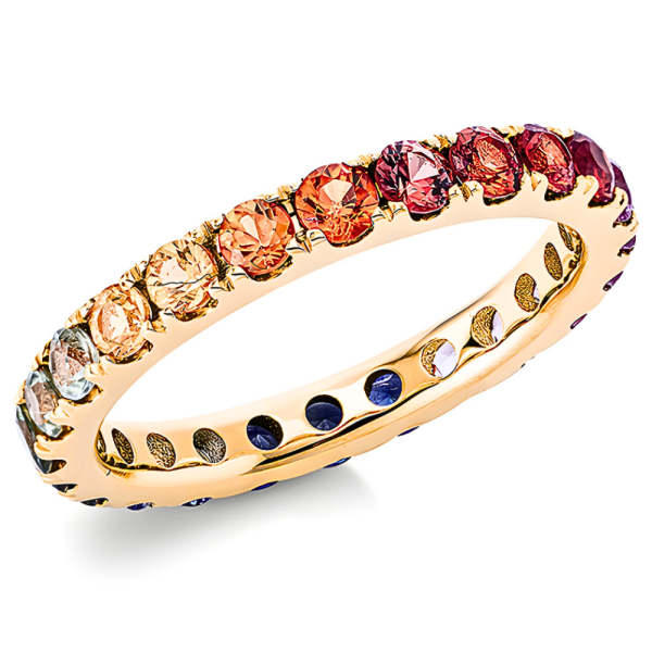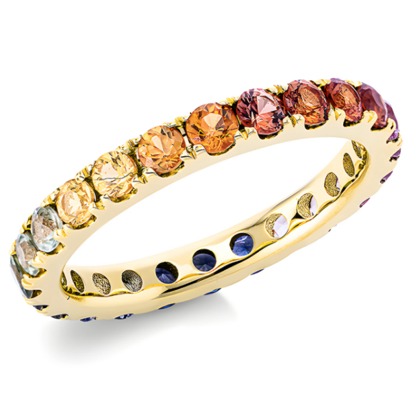 Pagamintas Vokietijoje iš aukštos kokybės brangakmenių. Nepakartojamo grožio žiedas išskirtinio stiliaus, aukštos kokybės, su komforto zona. Žiedas gali būti pagamintas pagal užsakymą: raudono, geltono bei balto aukso, su spalvotais safyrais, arba safyrais vienos spalvos. Safyras yra jėgos, optimizmo ir aktyvumo simbolis. Stebuklinga safyro galia — padeda sumažinti įtampą konfliktų metu ir išspręsti sveikatos problemas. Safyras tinka — Žuvims, Svarstyklėms, Skorpionams, Dvyniams, Mergelėms, Liūtams, Avinams, Vandeniui, Šauliams.