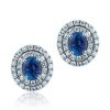 Auskarai su safyru ir dvigubu deimantų ratu aplink. Papuošalą kūrė juvelyrikos kompanija iš Italijos „Mirco Visconti“