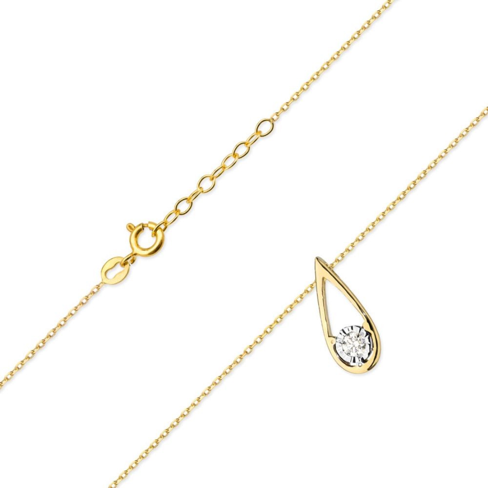 Geltono aukso pakabukas su deimantu (0,08 ct) – elegantiškas lašo formos akcentas.