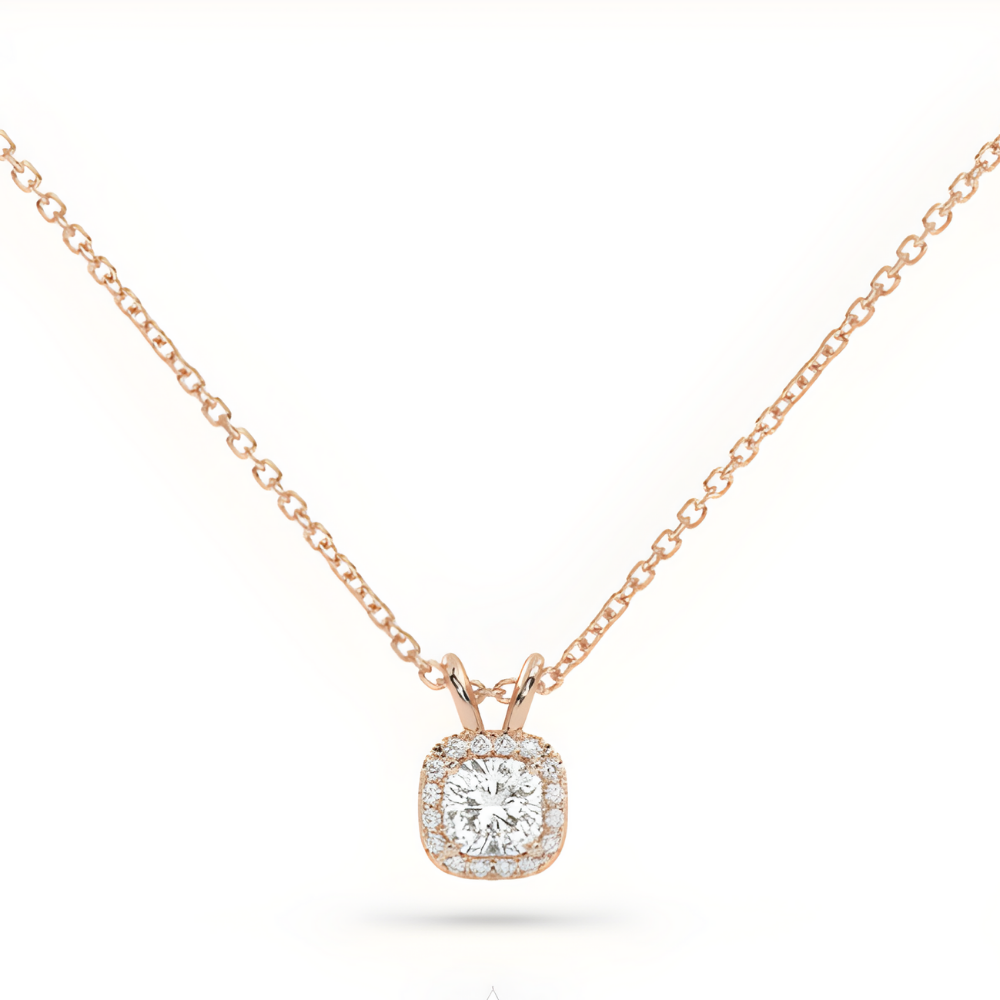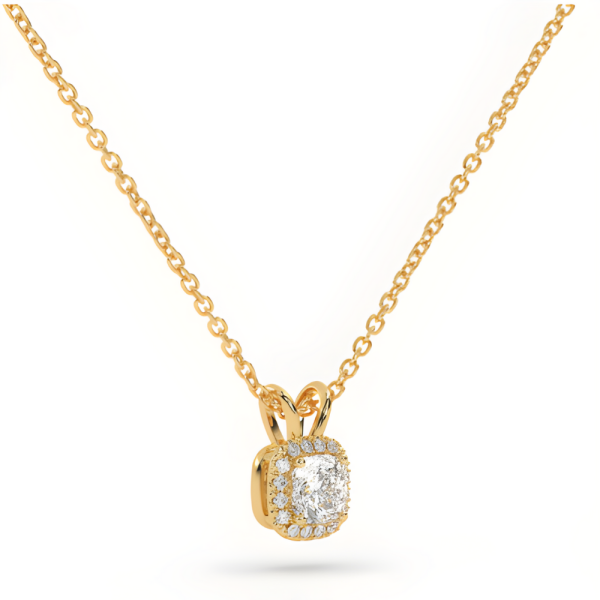 Auksinė grandinėlė ir prabangus pakabukas su 1.00 ct Cushion Lab Grown Deimantais (užauginti deimantai)
