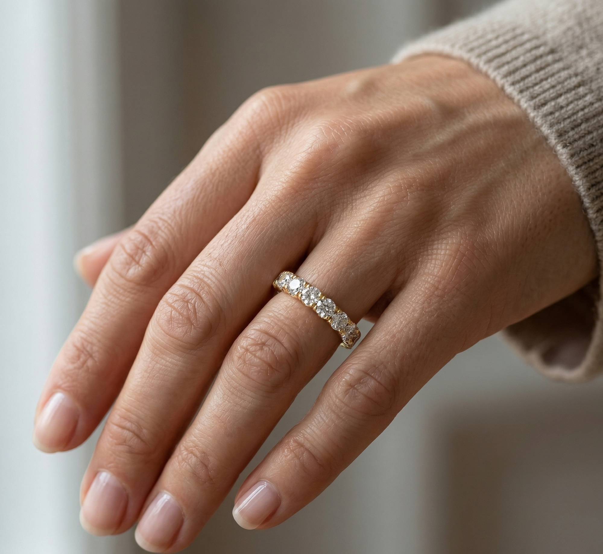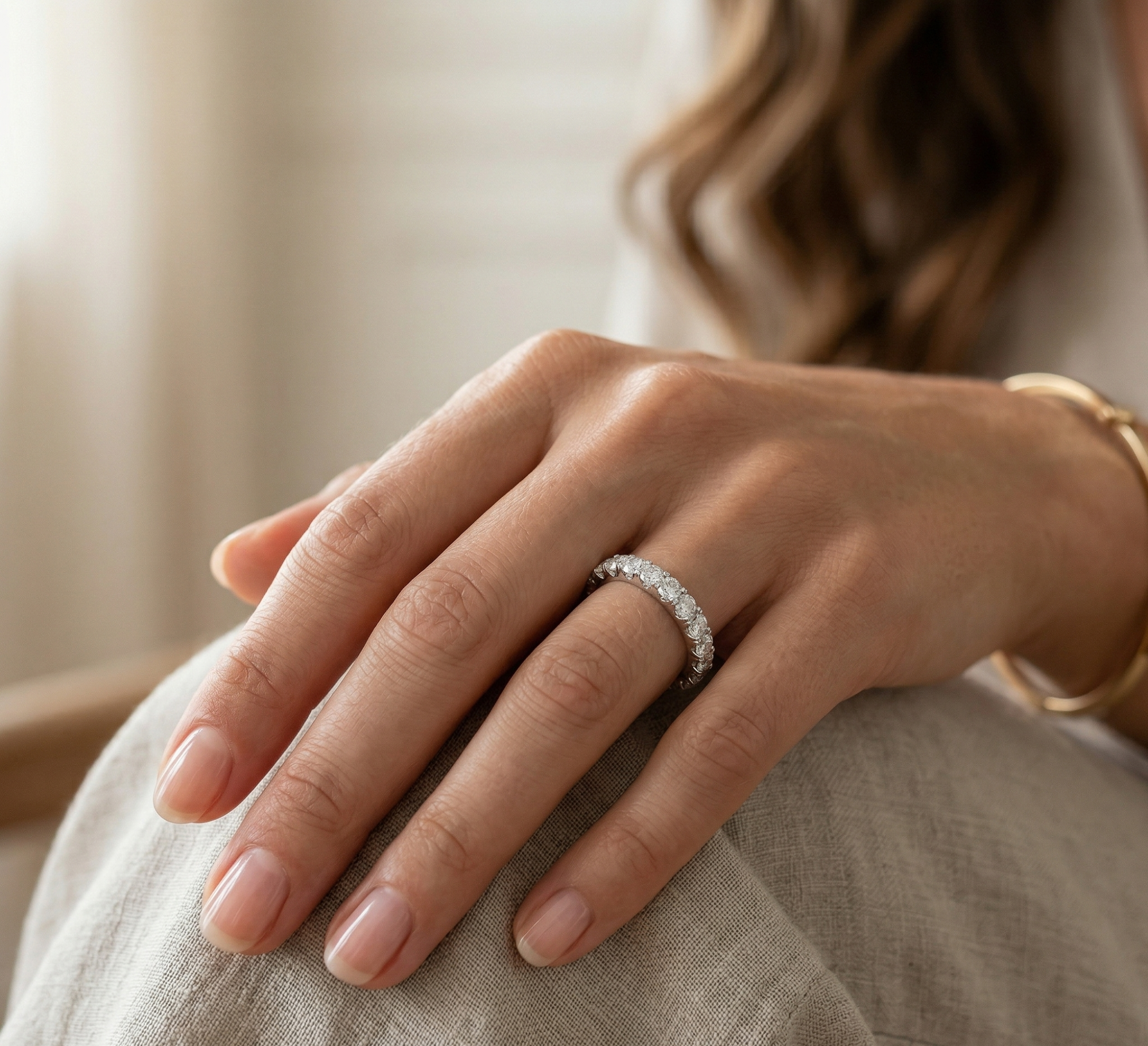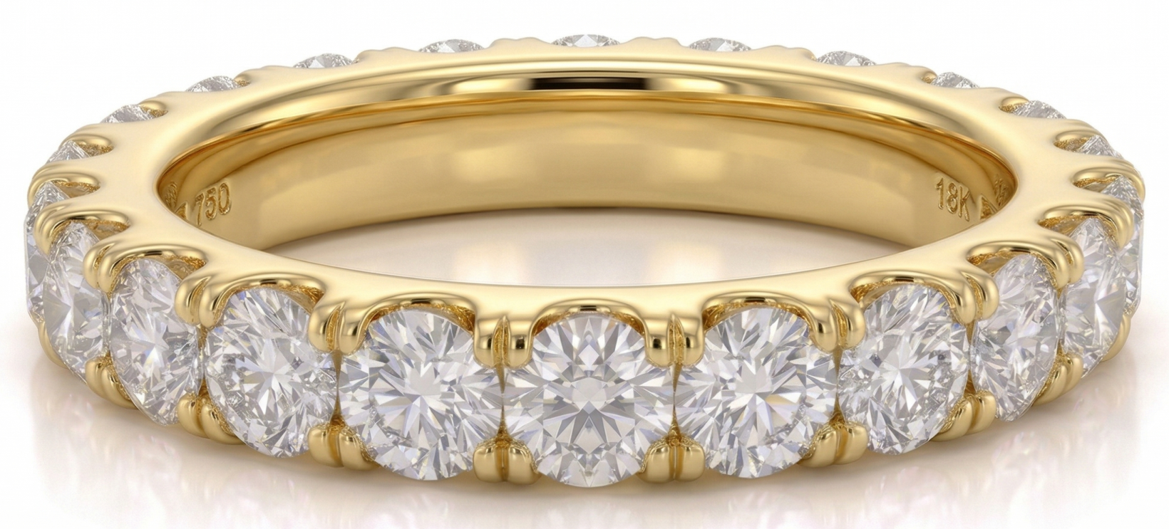 Deimantinė juostelė su deimantais – žiedas su 3.80 karato deimantais. Nesvarbu, ar jau turite sužadėtuvių žiedą, ar vestuvinį žiedą – juos lengvai derinsite su deimantine juostele, kuri gali būti nešiojama ir kaip papildomas, ir kaip vienintelis žiedas.