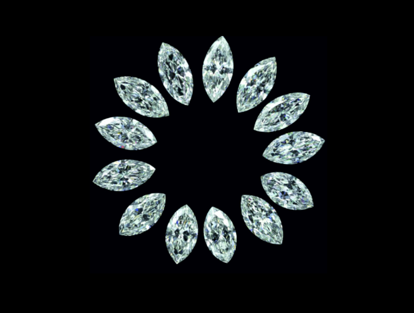 Deimantinė juostelė su laboratoriniais 13 Marquise 6.57 karatai