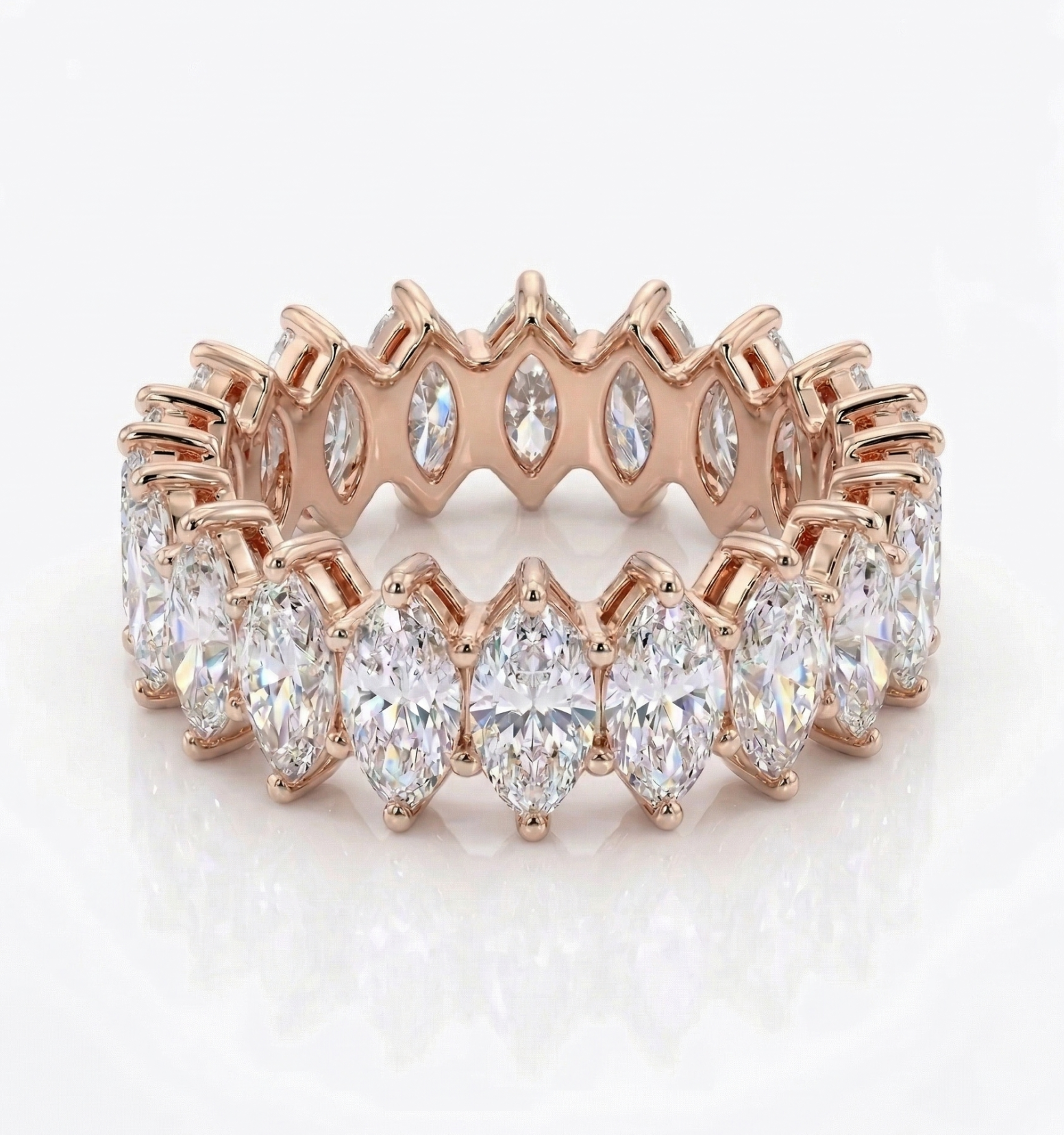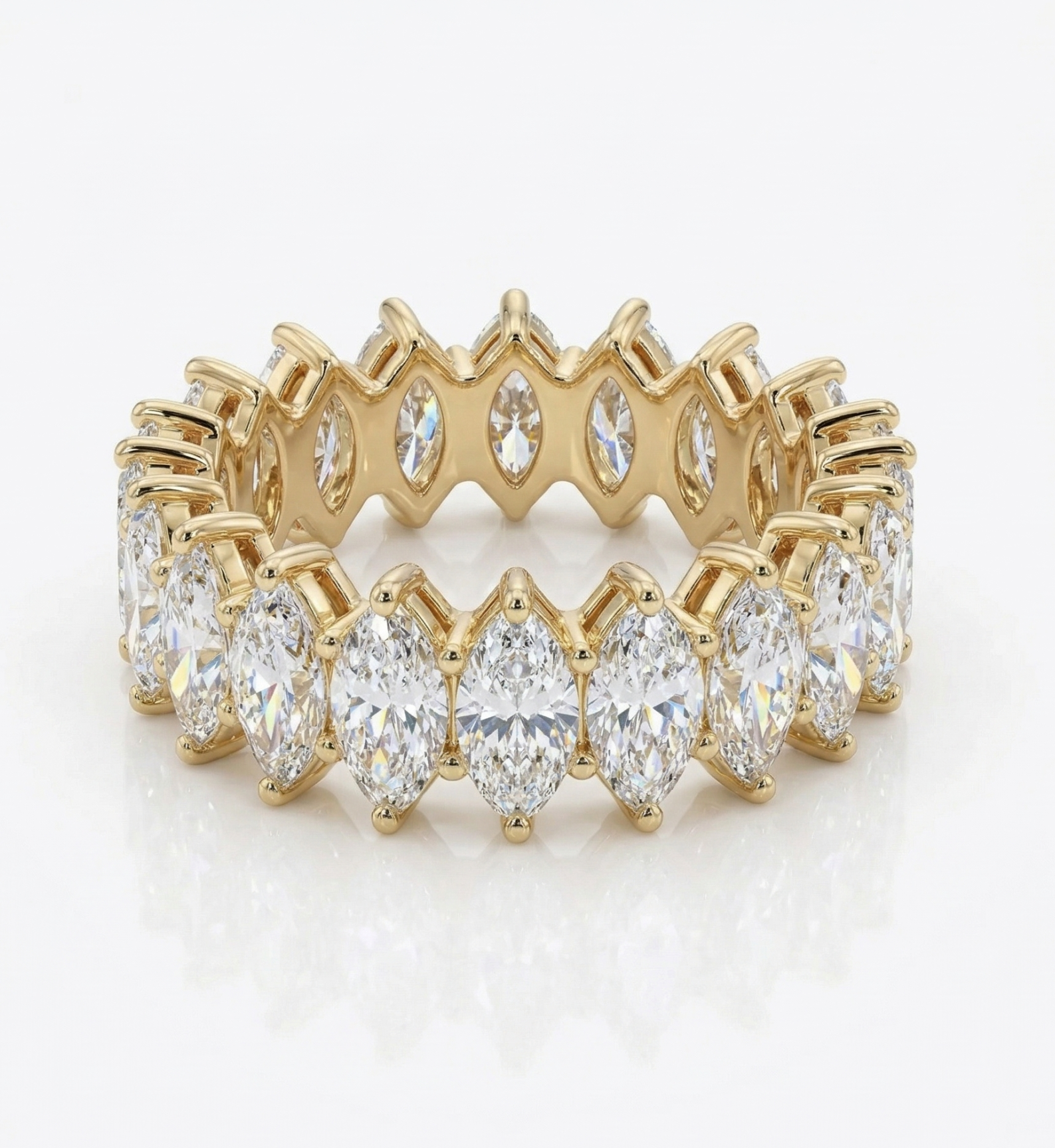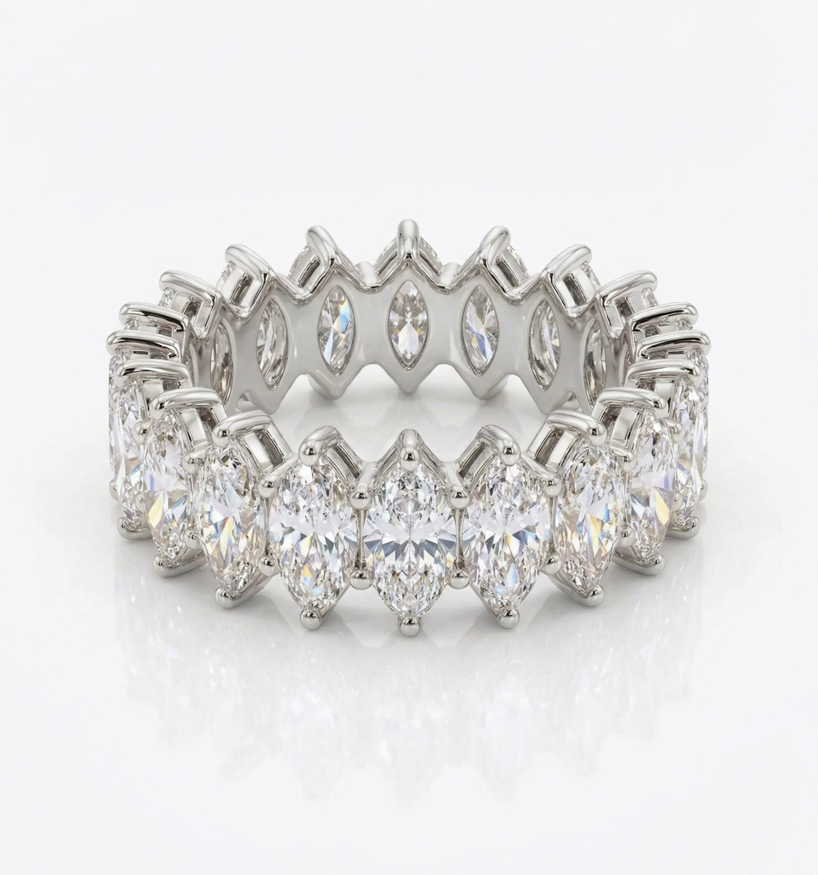 Išskirtinė deimantinė juostelė su 13 markizės formos laboratoriniais deimantais — žiedas su 6.57 karato deimantais. Aukščiausia žiedo kokybė iš Lietuvos. Maksimalus patogumas kasdieniam nešiojimui. Tai išskirtinis pasirinkimas tiems, kurie vertina aukštą kokybę. Pagaminta Lietuvoje — pagal aukščiausius standartus.