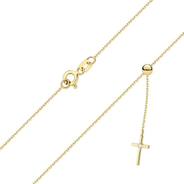 Geltono aukso grandinėlė – Kryželis su deimantu (0,015)
