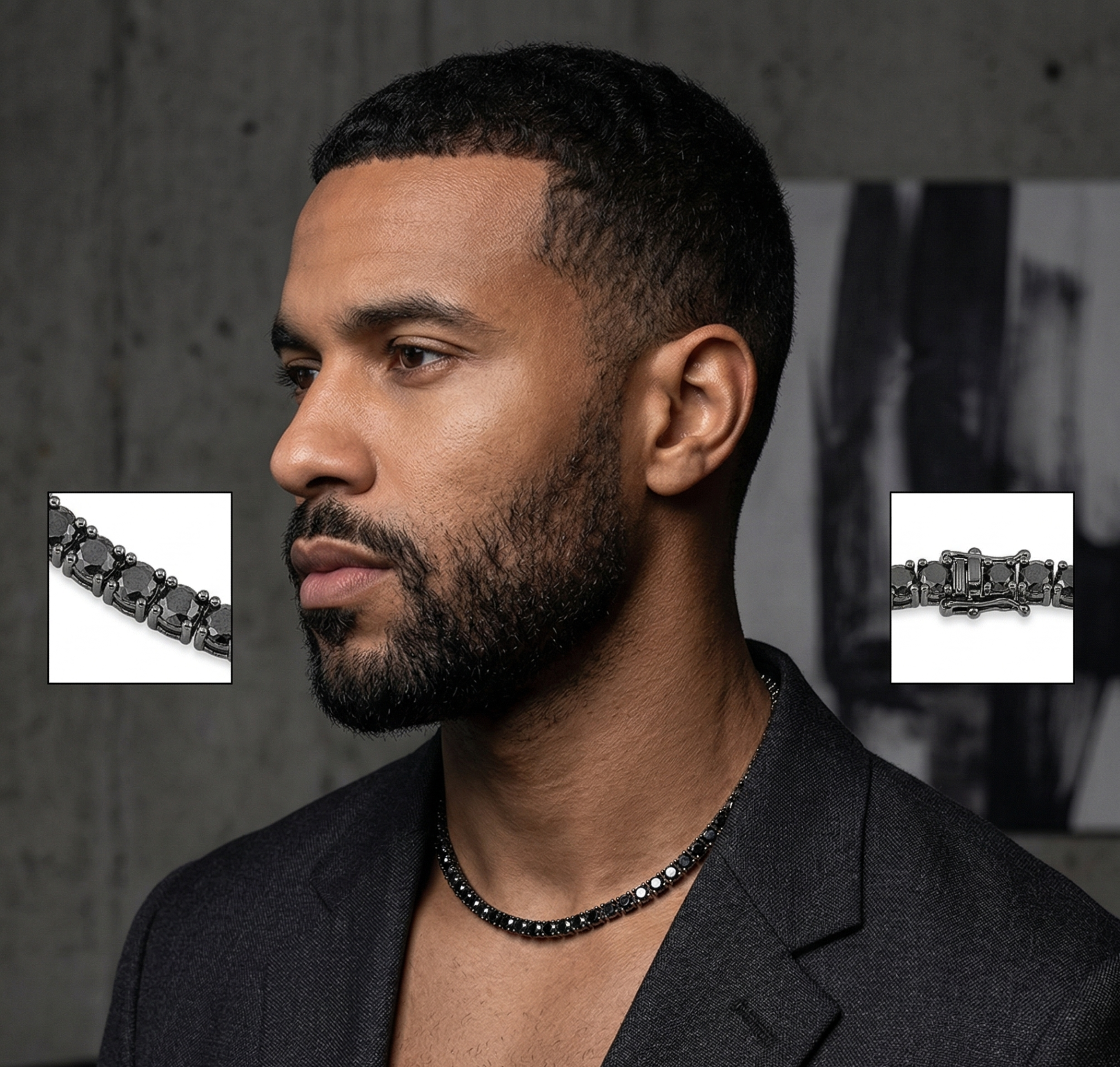 Prabangi auksinė grandinėlė su juodais deimantais — koljė TENNIS jūsų kasdienybei ir šventėms