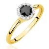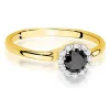 Išskirtinė paslaptis geltono aukso lankelyje – Halo sužadėtuvių žiedas su juodu deimantu (0,60 ct)