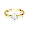 Geltono aukso žiedas su 0,70 ct deimantu ir ypatinga šešių kojelių karūnėle, kurios kojelės tarsi persipina ir saugiai laiko deimantą. Šis žiedas yra labai patogus dėl jo žemos karūnėlės, todėl puikiai tinka kasdieniam nesiojimui. Tai išskirtinis dizainas, kuris idealiai tinka tiek sužadėtuvėms, tiek ypatingoms progoms.