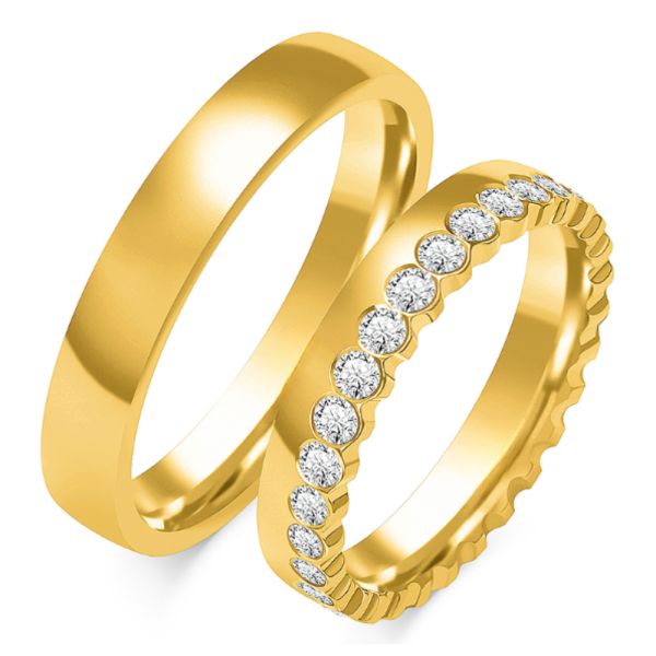 Nepakartojamo grožio vestuviniai žiedai išskirtinio stiliaus, aukštos kokybės, su komforto zona. Puikus pasirinkimas, atspindintis jūsų meilės istoriją. Jų technologija išsiskiria — vestuviniai žiedai gaminami iš grūdinto aukso, kuris atsparus mikro įtrūkimams, neturi sudėtyje nikelio bei mažiau braižosi. Žiedai gali būti pagamintas pagal užsakymą: raudono, geltono bei balto aukso, už papildomą mokestį su kitos aukso spalvos krašteliais, skirtingu žiedo pločių arba su deimantais.