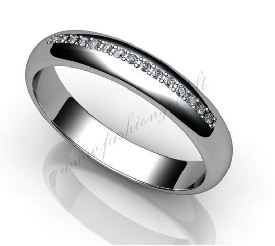 Klasikinio dizaino rankų darbo vestuvinis žiedas lyg subtilia diadema papuoštas 15-ka tikrų deimantų.