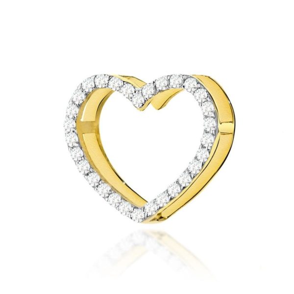 Geltono aukso pakabukas su žėrinčiais deimantais širdutės formos. Puikus pasirinkimas kasdienai ir ypatingoms progoms.