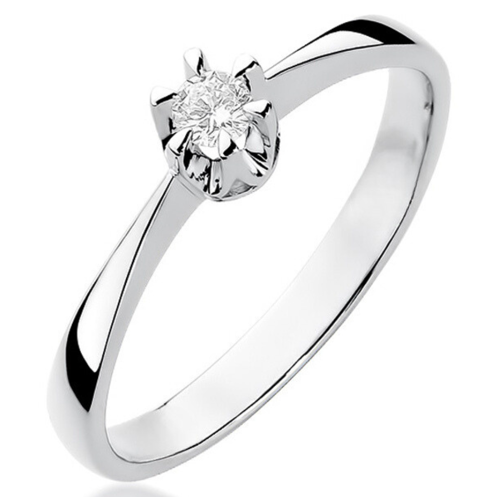 Klasikinis sužadėtuvių žiedas su 0.10 karato deimantu. Nemokamas graviravimas. Maksimalus patogumas. Natūralus deimantas.