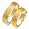 Nepakartojamo grožio vestuviniai žiedai išskirtinio stiliaus, aukštos kokybės, su komforto zona. Puikus pasirinkimas, atspindintis jūsų meilės istoriją. Jų technologija išsiskiria – vestuviniai žiedai gaminami iš grūdinto aukso, kuris atsparus mikro įtrūkimams, neturi sudėtyje nikelio bei mažiau braižosi. Žiedai gali būti pagamintas pagal užsakymą: raudono, geltono bei balto aukso, už papildomą mokestį su kitos aukso spalvos krašteliais, skirtingu žiedo pločių arba su deimantais.